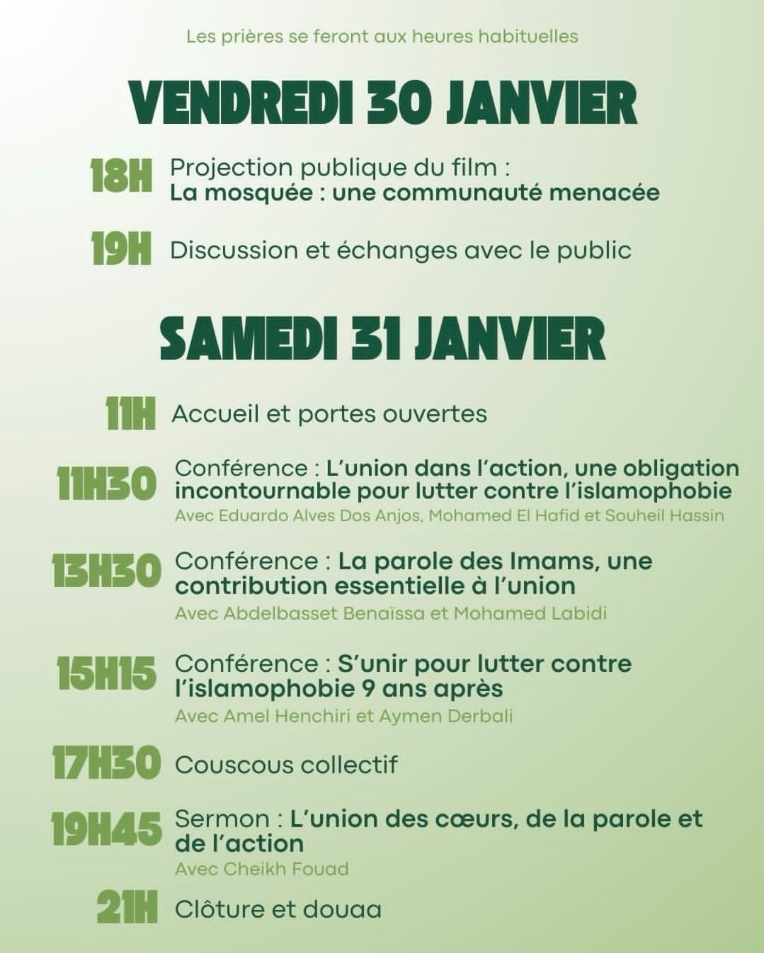 Trois journées de mémoire, de recueillement et d’union pour honorer les victimes de l’attentat du 29 janvier 2017.